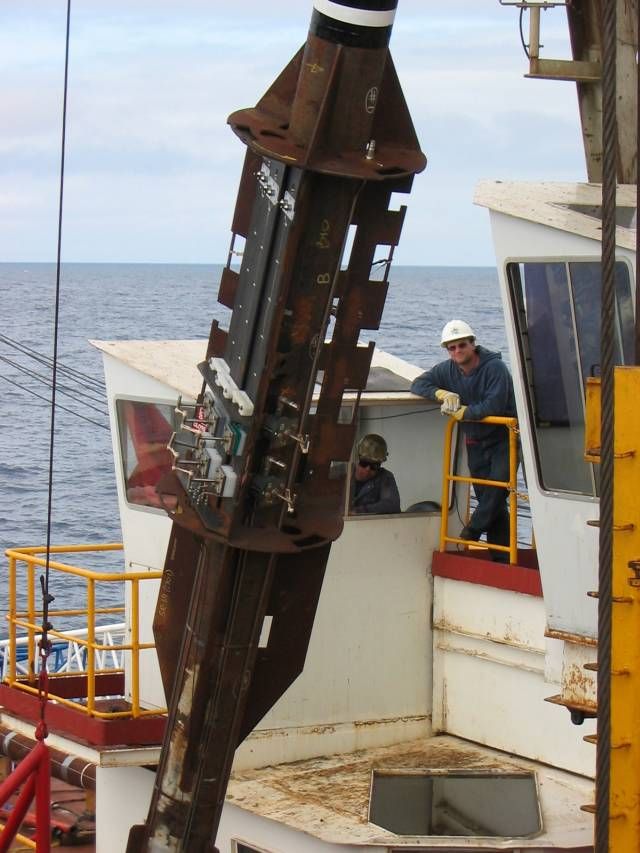 Erstmal durchatmen! Die Rock-Beprobung war doch ziemlich anstrengend und ich bin froh, dass das endlich vorbei ist. Besonders der Schlafentzug war fies. Wenn ich mal Zeit zum ausruhen hatte war ich so übermüdet, dass ich nicht einschlafen konnte. Oft bin ich dann nach etwa 4-5 Stunden mit der Nachricht geweckt worden, dass der nächste Kern in einer halben Stunde an Deck ist. Am Nachmittag des 31.07. kam dann die Meldung, dass der kommende Kern der letzte sei (580 mbsf). Anschließend wurden Messgeräte ("logging tools") in das Loch hinunter gelassen, mit denen die Beschaffenheit der umgebenden Gesteinsschichten untersucht werden können. Dabei wurde zum Schrecken der CORK-Leute festgestellt, dass sich ein Teil der Verrohrung im oberen Abschnitt des Loches gelöst hat und etwa zehn Meter abgesackt ist. Dadurch ist das Loch in diesem Abschnitt nicht mehr nach Aussen isoliert und die geplante Langzeitmessung gefährdet. Die Bohrmannschaft will nun versuchen diesen Abschnitt zu zementieren, es ist allerdings fraglich, ob das funktioniert.