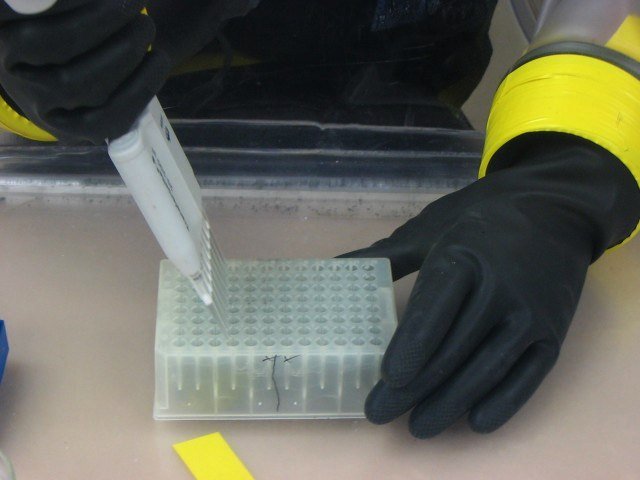Von dem vierten whole round wurden auch die Proben für die Kultivierung an Bord entnommen und in Serumflaschen gegeben, die mit Medium befüllt waren. Ausgehend von diesen Sediment-Aufschlämmungen in den Serumflaschen habe ich als weitere Kultivierungsansätze je eine oxische und eine anoxische Verdünnungsreihe in Röhrchen und je eine MPN-Serie in Mikrotiterplatten angelegt. Der Einfachheit halber habe ich die Proben bei Raumtemperatur inkubiert.
