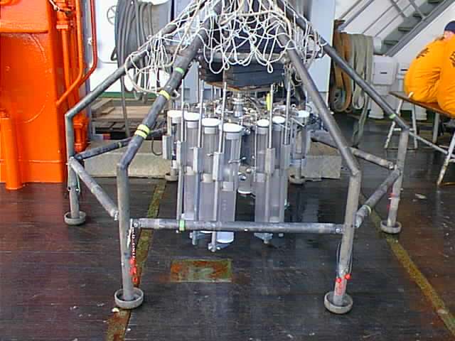 Unsere Alu-Kisten waren heil an Bord. Alle Geraete funktionieren. Ein Problem ergibt sich daraus, dass statt der 10 Kubikmeter-Stickstoffflaschen solche mit 10 Liter Volumen (entsprechend 2 Kubikmeter Gas) angeliefert wurden. Wir hoffen, dass wir von einer anderen Gruppe Argon bekommen koennen. Den Isotopen-Container koennen wir noch nicht benutzen, da der Zaehler noch nicht einwandfrei arbeitet. Es muss erst noch ein Wischtest absolviert werden. Am ersten Abend haben wir nach Beziehen der schoenen Kabinen (mit Seeblick) unser Labor eingerichtet und alles verlascht (festgezurrt). Am naechsten Morgen ging es nach Fruehstueck (ueppig, wenn man will, jedenfalls gut) und Sicherheitsbelehrung und Fahrtleiterbesprechung um 10 Uhr los Richtung Suedosten - bei Windstaerke 7. Es hat recht nett geschaukelt, und die weiteren Aussichten sind nicht sehr vielversprechend. Andrea hat es zuerst erwischt, dann Joerg, den aber heftiger (hat jetzt ein Pflaster hinter dem Ohr). Marco hat lange noch gearbeitet (er hatte Tablette und Akupressur-Armband) und war auch in der Nacht einsetzbar, obwohl es ihm nicht immer gut ging. Ich hatte nur einen kurzen Output rueckwaerts, habe aber 15 Minuten danach bereits wieder zu Abend gegessen. Henrik hat sich, wenn es ihm nicht gut ging, ruhig gelegt und nur begrenzte Uebelkeit verspuert. Wir sind ja schliesslich nicht zum Vergnuegen da... Nach dem Abendessen (soweit wir daran teilgenommen hatten) haben wir uns in die Kojen gelegt, wo man es am besten aushaelt und bis Mitternacht sogar ein wenig geschlafen. Um zwei Uhr haben wir die erste Station (830 m tief) erreicht. Eine Stunde zuvor haben Henrik und ich die anderen befragt, ob sie an der ersten Probenahme teilnehmen koennen. Alle wollten und haben. Allerdings lag der gelbgruene Joerg meistens auf dem Fussboden des Labors. Als dann die ersten Multicorer-Kerne hochkamen, enthielten sie leider nicht die gesuchte Sapropel-Schicht. Wir haben dann wenigstens zwei Sauerstoff-Profile in einem Kern gemessen, die durch Vulkansteinchen allerdings gestoert waren. Immerhin: Sauerstoff gibt es bis ca. 5 cm Tiefe! Nach dem Multicorer wurde ein Schwerelot von 12 Metern Laenge gezogen, das aber leider leer war. Um sechs Uhr bin ich dann noch mal fuer eine Stunde in die Koje gegangen, um fuer das Fruehstueck um 7.30 Uhr fit zu sein. Der dritte Kern, ein sogenanntes Kolbenlot kam gut hoch, kann aber nicht an Bord fuer unsere Zwecke geoeffnet werden. So haben wir bisher noch nicht die eingeplanten Proben gewinnen koennen und hoffen auf die zweite Station, die wir in einigen Stunden (jetzt ist es 9.30 Uhr) zu erreichen hoffen. Das Schiff faehrt im Moment ruhiger, da Seitenstabilisatoren eingeschaltet sind. Jetzt werde ich erst mal den Funker aufsuchen und sehen, dass ich dies als e-mail los werde. Um 10.20 Uhr gibt es die naechste Sicherheitsuebung... Liebe Gruesse allen Landratten Heribert _______________________________________________________