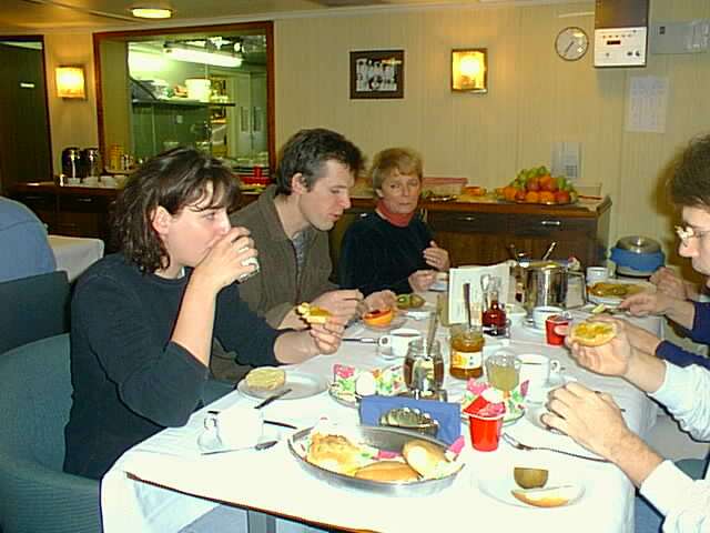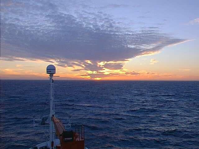 Heribert _______________________________________________________ Ihr Lieben, zum Wochenende nur einen echten Kurzbericht, denn - ob Ihr's glaubt oder nicht - die Zeit ist knapp. Wir sind eifrigst dabei unseren vorlaeufigen englischen Fahrtbericht zu schreiben. Dazu muessen alle verfuegbaren Daten dargestellt und kurz diskutiert werden. Der Bericht gehoert als Anlage zu unserem Auswertungsantrag an die DFG, der auch hier an Bord noch gruendlich ueberarbeitet und am 13.2. abgeschickt werden soll. Ansonsten geht es uns allen gut. Die ersten Sachen sind schon wieder verpackt. Noch sind an drei Stationen Sauerstoffprofile zu messen. Ausserdem werden die ersten Epifluoreszenz-Zaehlungen nach grossen anfaenglichen Kontaminationsproblemen in Angriff genommen. Herzliche Gruesse Heribert _______________________________________________________ Ihr Lieben, hiermit schicke ich Euch den letzten Bericht von der Fahrt M40/4. Sieben von zwoelf Kisten sind schon wieder gepackt. Der achtseitige vorlaeufige Fahrtbericht mit Abbildungen versehen und fast fertig. Wir sind aus dem Golf von Lyon, wo wir die spanische Kueste sehen konnten, zwischen Menorca und Mallorca hindurchgefahren (nachts, aber man konnte doch beide Inseln erkennen), haben noch eine Stationsreihe bei ruhigem Wetter gehabt und dampfen nun mehr als 30 Stunden 381 Seemeilen Richtung Malaga, wo wir Dienstag morgen um 8 Uhr einzutreffen hoffen. Kurz davor gibt es in der Strasse von Gibraltar noch zwei Stationen, die wir aber nicht mehr beproben werden, da alle Geraete schon verpackt sind. Ausserdem soll es morgen noch einmal Sturm geben. Das erste Tiefenprofil ist ausgezaehlt und gibt vernuenftige Bakterienzahlen! So langsam wird das Angebot an frischem Obst an Bord duerftiger. Auch sollen die Leerdisketten ausgegangen sein, da sich alle heftigst digitale Photos kopieren, von denen ich taeglich ein oder zwei Dutzend nachliefere. Ich schicke anbei eins aus unserem letzten Sturm und hoffe, dass Ihr es auspacken koennt. Heute vormittag wurde eine Herde Grindwale gesichtet, heute nachmittag Schildkroeten. Ausserdem hat sich eine Brieftaube auf das Schiff verirrt. Seltene Zeichen tierischen Lebens! Ganz herzliche Gruesse von uns allen, und bis bald Heribert
