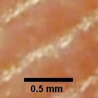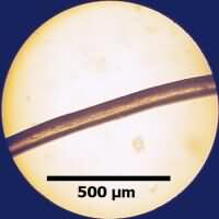 Ein Haar und 1 Quadratratmillimeter Haut in etwa gleicher Vergrößerung