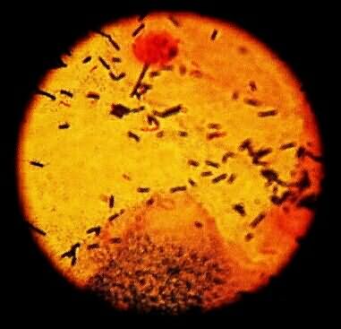 Vaginal swab after Gram staining by which the Gram-positive bacteria